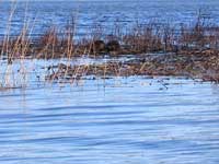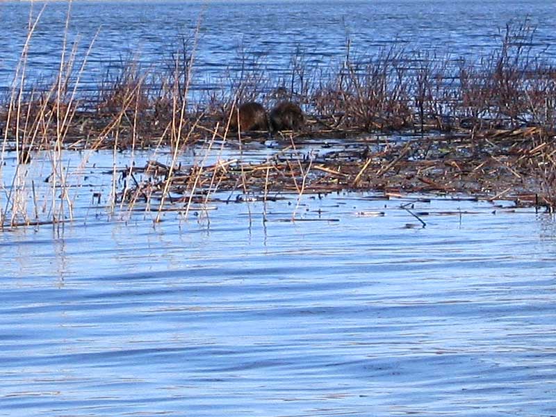 We paused in the calm pond below the bridge and snacked on cashews washed down with lots of water. We started noticing there were quite a few kingfishers around, but were surprised there were very few geese. Perhaps it was still a bit early for them. There were no birds of prey sighted either, perhaps for the same reason. What we did see were dozens of muskrats - there's a bumper crop this year!