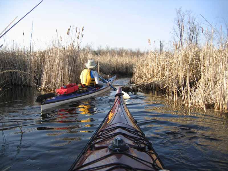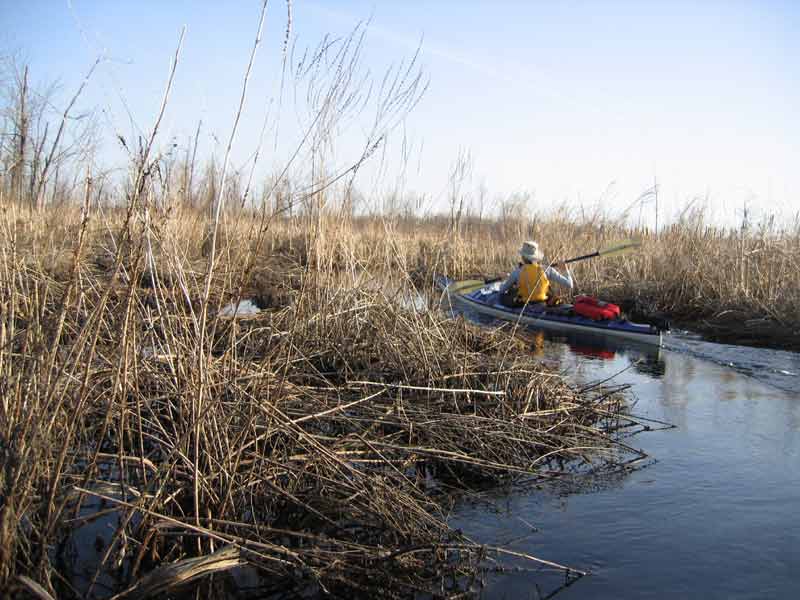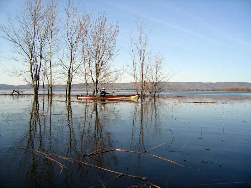 Keenan paddles the edge of the forest