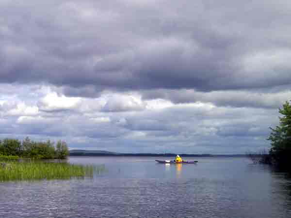 This is truly an enormous lake, and it's shape and the geological features of the land that surrounds it creates some of the most changeable weather patterns imaginable. We were only on the lake for about thirty minutes for our paddle down to the access site behind the store, but in those few minutes we experiencing calm and cloudy, sunny with small riffles, and stormy-looking with small whitecaps.