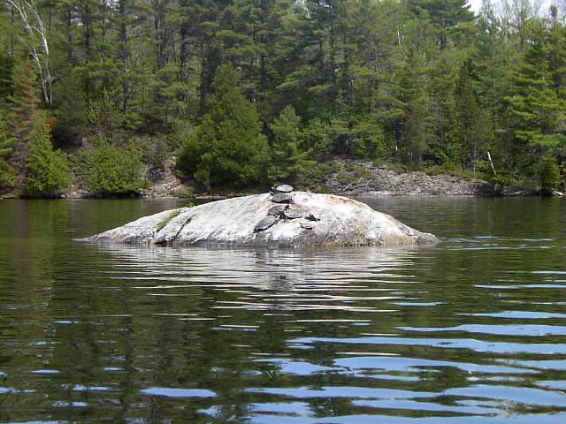 We headed southwest and then turned north into Donaldson Bay. As with many areas of the lake, there is a shoal right in the middle with several metres of rock just under the water's surface. This shoal is one of just many that was once an above-surface island before the dam was built at Outlet in the 1880s. The result was a 1.3m rise in the water level, resulting in many new shoals that pose a serious danger to powerboaters (anything that makes them slow down to a reasonable speed is a good thing, don't you think?).