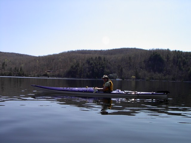 We used the McCloskey boat launch, which aside from being very convenient, also offers free parking in the early season and in the fall. In other words, when the two public beaches on the lake are not in use. The air temperature was perfect, in the area of 20 celcius. The water was cold with a dark green appearance. It was short and t-shirt weather. With calm waters and barely a cloud in the sky, no skirts required.
