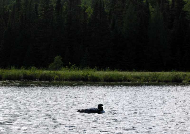 interesting in the areas where the lake narrows, where there are typically lots of small islands. The lake varies constantly from sandy shores to rough granite. We saw quite a few loons, some ducks, a couple of birds of prey, and a mink that was swimming in open water and then slithered up some granite onto an island. Minks do not look like water creatures, but somehow they manage just fine.