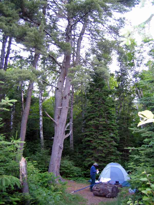 behind our tent at about 3:00 am. It is unlikely that it was a black bear (and even if it was, extremely unlikely that it wanted anything to do with us) but when you wake up at 3:00 am in a tent in a secluded forest sometimes you assume the least comforting option. Whatever it was (perhaps a moose) it crashed on by and did not enter our camp. It was kind of exciting and also unnerving to realize that were truly in the wilderness.