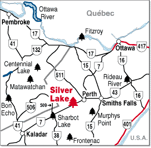 Silver Lake runs directly alongside Highway 7 in an east/west direction. It is about 4km long and 1km wide. There was always a strong breeze on the lake during the two days we were there, blowing out of the west. You can launch a boat in a variety of places, including a nice looking picnic site just off the highway about half way down the lake.