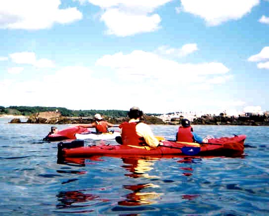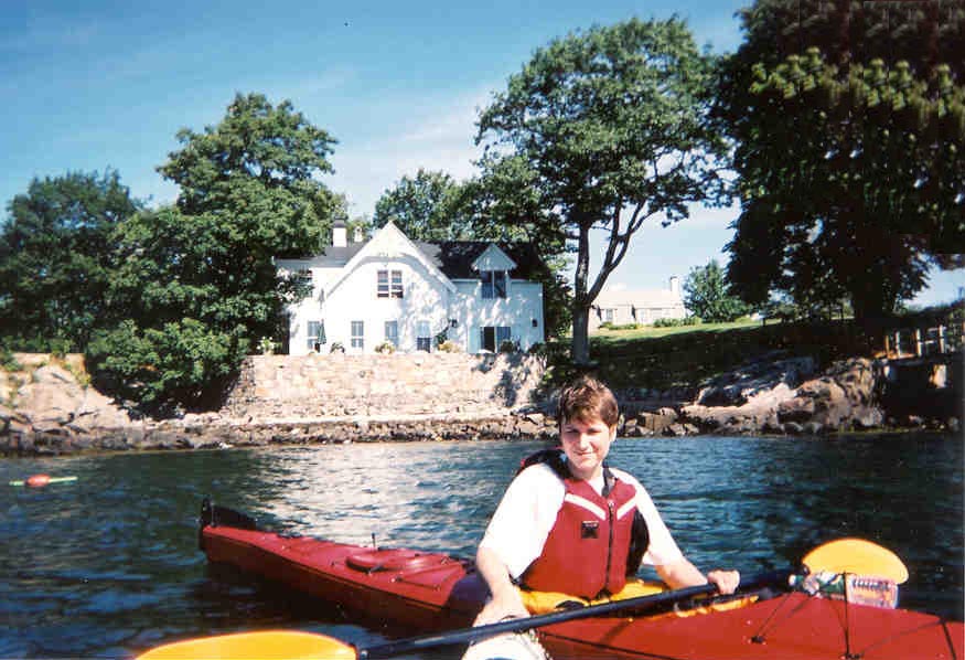Wednesday, August 29 was kayaking day...the first time for both of us. We found a kayak tour operation called Excursions on Route 1, and we headed out with nine other members of the morning tour along with our guide "Dan" for a half-day excursion in York Harbour and the Atlantic coast. This was no joke...it was three hours of hard paddling covering 7 miles...but we loved it! Keenan got to use a rather nice rotomolded german boat known as the Prijon Kodiak, which was the only one big enough to accomodate him, once they removed the thigh braces. Julie got a decent rotomolded Necky Looksha IV.