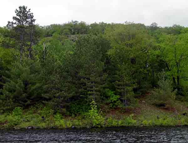 We paddled back to the top of the channels and went back down the right side for the second time. This time when we got to the end we continued through Supply Lake into Stevenson Lake. There are about a dozen cottages here, and in our opinion, a bunch of fortunate people. It's a beautiful lake with a lovely view of a cliff to the north.