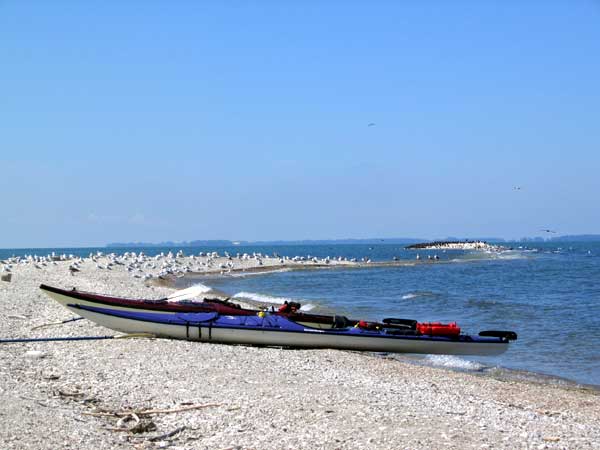 DAY 1 (KAYAKING ON LAKE ERIE AND IN POINT PELEE PARK) Finally, ready to go Hey. that's where we are staying Portage marker for entering the park Beautiful flower Scooting through the small channel Heron in flight Barely enough surf to play Relaxing after a good day DAY 2 (WALKING IN POINT PELEE PARK) Southernmost land mass in Canada Together on the tip Gorgeous sunset DAY 3 (KAYAK/WALK: LAKE ERIE, MIDDLE ISLAND, PELEE ISLAND) Inviting sunrise We're going to kayak in the same water as you? Starting out from Fish Point beach Our distant destination Arriving at Middle Island Strong island foundation Barf missile The puker Lots of room at the inn Sharp teeth no match for hungry cormorants Ready to go back Snake sighting Miami mist...in Canada? Lighting the way Biggest operation on Pelee Island DAY 4 (PADDLING IN HILLMAN MARSH) Julie in the marsh Egret in flight Bald and beautiful |